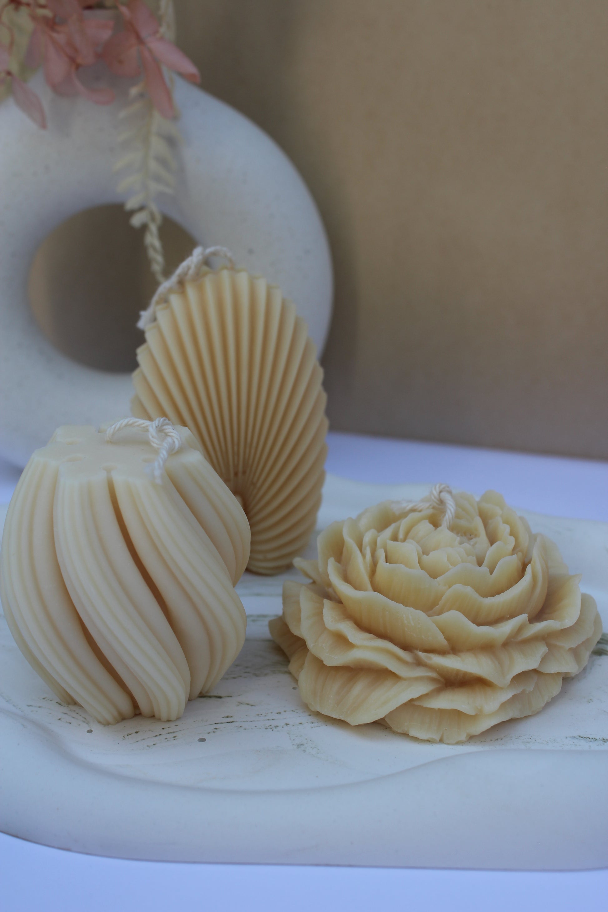 Peony candles add decorative flair to any space or function as meaningful favors.